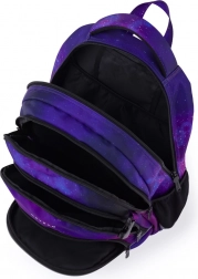Štýlový školský batoh s galaktickým motívom kombinuje atraktívny dizajn a premyslenú ergonómiu. Trojkomorové usporiadanie pojme učebnice, zošity aj desiatu, nechýba vnútorné vrecko, organizér na drobnosti a priehradka na notebook. Bočné vrecko na fľašu a držiak na kľúče/čip uľahčia každodenné používanie.