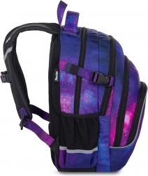 Ľahký a priestranný školský batoh OXYBAG Scooler Galaxy s trojkomorovým usporiadaním, organizérom a vreckom na notebook ponúkne perfektný poriadok a pohodlie pre školákov od 3. triedy. Má anatomicky tvarovaný priedušný chrbát, nastaviteľné popruhy s hrudným pásom, reflexné prvky pre bezpečnosť a nepremokavé vystužené dno. Objem 28 l, hmotnosť 780 g, nosnosť 8 kg.