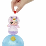 Jednorožec dorazil do sveta L.O.L. Surprise po prvýkrát a prináša úplne nový spôsob hrania. Každá figúrka Tots má priehľadné detaily a stojí na podstavci, ktorý sa premení na svetelnú scénu pre ohromujúci efekt lávovej lampy. Nalejte do figúrky tri farebné „mixtúry“ a sledujte, ako sa farebné bublinky vo vnútri magicky pohybujú.