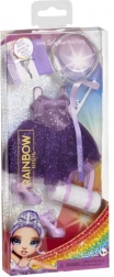 Baletný fashion set RAINBOW HIGH premení vašu bábiku na elegantnú primabalerínu. V balení nájdete trblietavý fialový tylový kostým, ladiace topánky a doplnky, ktoré podčiarknu jedinečný štýl. Vďaka univerzálnej veľkosti sedí na všetky 11" bábiky RAINBOW HIGH.