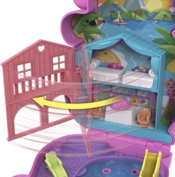 Herný set Polly Pocket Dobrodružstvá v Riu prináša tropickú zábavu do vašich rúk. Otvorte ružové opičie puzdro a objavte detailný interiér s domcom a bazénom.