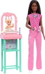 Staňte sa detskou lekárkou s Barbie a jej maličkou pacientkou s prvkami inšpirovanými lekárskou profesiou!