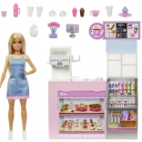 Objavte kúzlo kaviarenského prostredia s Barbie a staňte sa baristom vo svojom vlastnom hernom kúte. Tento set obsahuje Barbie v džínsových šatách s pohárom v ruke, ružový kávovar, vitrínu s pečivom a poličky s fľašami a hrnčekmi. Vaše deti môžu hrať rôzne úlohy a rozvíjať svoju kreativitu.