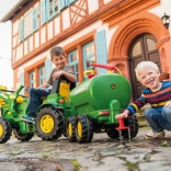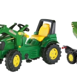 Vďaka posuvnému sedadlu traktor rastie spolu s dieťaťom a tiché kolesá s gumovými pásmi znižujú hluk pri jazde po chodníku aj podlahe. Uzavretý reťazový prevod chráni malých jazdcov a zabezpečuje hladké a ľahké šliapanie. Riadená predná náprava zas pomáha k istému ovládaniu v teréne.