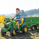 Naštartujte fantáziu na plné obrátky s robustným šľapacím traktorom JOHN DEERE 7930. Precízne spracované detaily, otvárateľná kapota s úložným priestorom a predná lyžica na nakladanie piesku či lístia robia z tohto modelu ideálnu voľbu pre akčné vonkajšie aj domáce hry.