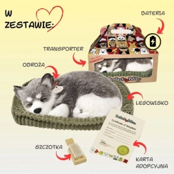 Hľadáte milú hračku, ktorá poteší a zároveň upokojí? Toto dýchajúce plyšové šteniatko aljašského huskyho pôsobí neuveriteľne autenticky – jemne „odpočíva“ v peliešku a svojím realistickým vzhľadom aj pokojným prejavom navodzuje príjemnú atmosféru. Mäkká plyš priamo vyzýva k pohladeniu a šteniatko je skvelým spoločníkom do detskej izby aj do obývačky ako dekorácia.