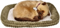 Táto realistická plyšová mačka napodobňuje spiace siamske mačiatko a vďaka jemnému „dýchaniu“ pôsobí mimoriadne upokojujúcim dojmom. Mäkkučký peliešok priamo nabáda na vystavenie na poličke, nočnom stolíku alebo v detskom kútiku.