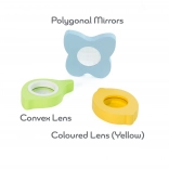 - Obsahuje kaleidoskop a 3 rôzne upravené šošovky, ktoré zmenia farbu, tvar a veľkosť okolitého sveta