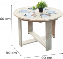 Impregnované borovicové drevo a kovové misky zaručujú stabilitu, dlhú životnosť a jednoduchú údržbu aj pri každodennom vonkajšom používaní.