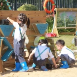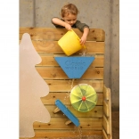 Dva lieviky, priehľadné kanáliky a mlynček premenia vodu či piesok na zábavnú podívanú. Deti pozorujú tok, experimentujú a učia sa princípom gravitácie a prúdu.