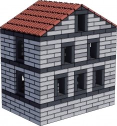 Súčasťou setu sú trojuholníkové nosníky, oblúkové okná a 32 strešných dielov – ideálny doplnok na dokončenie každej stavby.