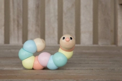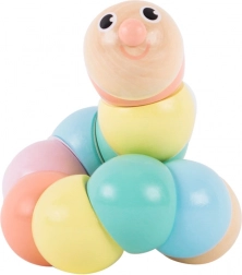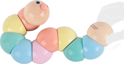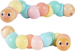 Drevená húsenica je ideálna prvá motorická hračka: príjemne padne do detskej ručky, hladko sa ohýba a natáča a motivuje k objavovaniu tvarov a pohybu. Pastelové farby podnecujú zrakové vnímanie a priateľská tvárička húsenice láka k hre znova a znova.
