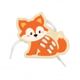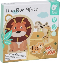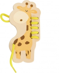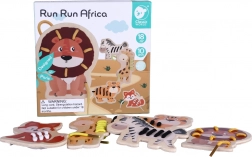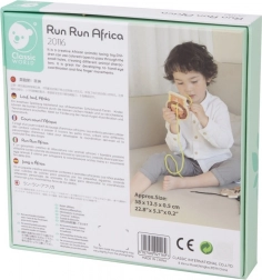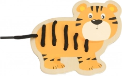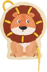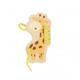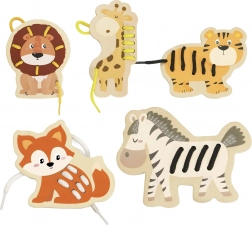 Súprava obsahuje 5 zvieratiek z Afriky (žirafu, leva, tigra, líšku a zebru) a 5 farebných šnúrok. Hladké drevené diely s bezpečným povrchom dobre padnú do detských rúk a pestré farby podporujú rozpoznávanie farieb aj pomenovávanie zvierat.