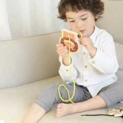 Prevliekanie šnúrky cez otvory prirodzene trénuje úchop, presnosť a koordináciu ruka–oko. Deti sa učia sústrediť a posilňujú obratnosť prstov zábavnou formou.
