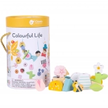 Rôznorodé koráliky v tvare kvetín, zvieratiek a geometrických tvarov motivujú deti k navliekaniu, triedeniu a tvoreniu vlastných vzorov.