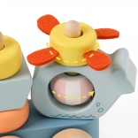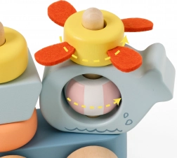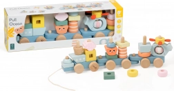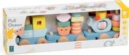 Objavte čaro oceánu s roztomilým vláčikom, ktorý je vyrobený z kvalitného dreva a má hladko brúsené hrany pre bezpečné hranie. Súprava Ocean Pull prináša lode, maják, vrtuľník i morské tvory – všetko na voľné skladanie a objavovanie tvarov a farieb.