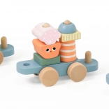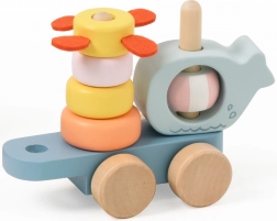Vláčik podporuje jemnú motoriku, priestorovú predstavivosť a tvorivosť. Tri prepojiteľné „autá“ unesú rôzne stavebné dieliky, ktoré deti ľubovoľne kombinujú. Šnúrka na ťahanie motivuje k pohybu a premení každú izbu na dobrodružnú oceánsku plavbu.