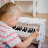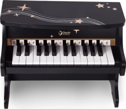 Toto štýlové detské pianíno Classic World je viac než len hračka – je to kvalitne spracovaný hudobný nástroj z pevného dreva s hladkým čiernym lakom a čistým, príjemným zvukom. Vďaka označeniu nôt nad klávesmi sa deti ľahko učia prvé melódie a rozvíjajú hudobné vnímanie od najútlejšieho veku.