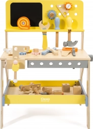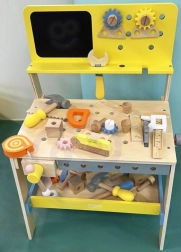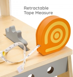 Drevený pracovný ponk je ideálna hračka pre malých kutilov. Deti môžu skrutkovať, zatĺkať, merať a skladať ozubené kolieska, zatiaľ čo rozvíjajú manuálne zručnosti a logické myslenie. Integrovaná kriedová tabuľa je skvelá na náčrty a nápady na ďalšie projekty.