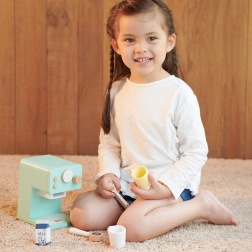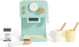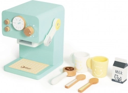 Doprajte malým baristom autentický zážitok z prípravy kávy. Tento drevený kávovar v tyrkysovom dizajne pôsobí realisticky vďaka pákovému ovládaniu a otočnému gombíku s mechanickým zvukom. Precízne spracovanie bez ostrých hrán a kvalitné prírodné drevo zaručujú trvácnosť aj bezpečnosť.