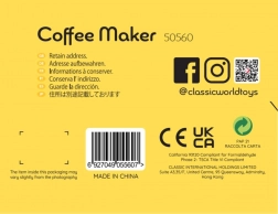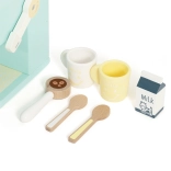 Sada obsahuje všetko, čo deti potrebujú na servírovanie „kávy“: kávovar, 2 hrnčeky, 2 lyžičky, „mlieko“ a tĺčik/odmerku na kávu. Hra podporuje jemnú motoriku, očnú–rukovú koordináciu aj spoločenskú interakciu.
