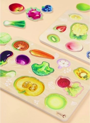 Drevená montessori skladačka so zeleninou je ideálnou voľbou ako prvá vzdelávacia hračka. Farebné a prehľadné ilustrácie motivujú deti k pomenúvaniu jednotlivých druhov zeleniny a prirodzene podporujú záujem o zdravé stravovanie. Veľkosť dielikov je prispôsobená malým detským rúčkam.