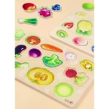 Každý dielik predstavuje iný druh zeleniny a trénuje rozpoznávanie tvarov, farieb aj slovnej zásoby.