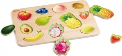 Každý dielik zodpovedá konkrétnemu výrezu, takže deti ľahko pochopia princíp triedenia a párovania, zatiaľ čo sa učia názvy a farby ovocia.