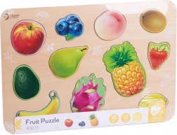Drevená skladačka CLASSIC WORLD s ovocnými motívmi je ideálne prvé puzzle pre najmenších. Deti pri hre priraďujú jednotlivé druhy ovocia do správnych otvorov, čím si prirodzene rozvíjajú jemnú motoriku, koordináciu ruka-oko aj logické uvažovanie. Živé farby a realistické ilustrácie motivujú k opakovanému hraniu a rozširujú slovnú zásobu.