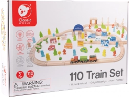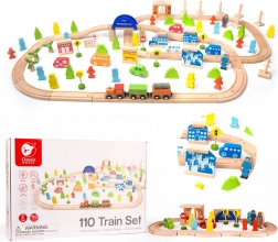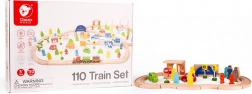 Táto rozsiahla vláčkodráha ponúka všetko pre stavbu živého mestečka: lokomotívu s dvoma vagónikmi, autá, stromy, značky, figúrky aj modrý viadukt. Vďaka desiatkam koľajníc deti ľahko poskladajú rôzne trate a každý deň vytvoria nový príbeh.