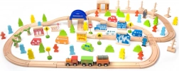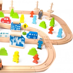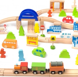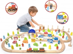 Koľajnice, most, vozidlá, budovy, stromy a postavičky – všetko v jednom balení. Deti si ľahko vytvoria vlastné mesto aj železničnú sieť.