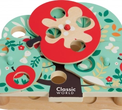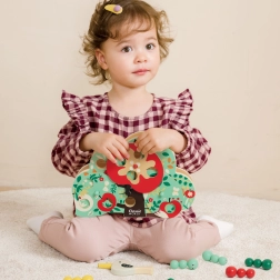 Deti pomocou „vtáčika-ďatľa“ s magnetickým zobáčikom chytajú farebné koráliky – červíky ukryté v otvoroch stromu. Hra je intuitívna, bezpečná a motivuje k opakovanému skúšaniu, čím prirodzene rozvíja trpezlivosť a presnosť.