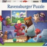 Pestrofarebné puzzle s roztomilými zvieratkami na lekárskej prehliadke prinesie deťom veľa radosti aj poučenia. Vďaka precíznemu spracovaniu značky Ravensburger sa dieliky ľahko skladajú a dobre držia tvar. Ideálne ako prvé väčšie puzzle pre malých staviteľov.
