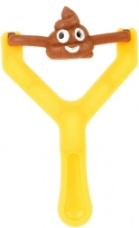 Mäkký, ohybný projektil v tvare emoji hovienka na zábavné trafenie bez ostrých hrán.