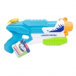 Vodná pištoľ je nielen funkčná, ale aj vizuálne atraktívna vďaka svojim výrazným farbám a jej tvar je prispôsobený pre jednoduché držanie.