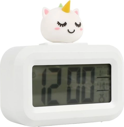Roztomilý biely budík s motívom jednorožca poteší deti aj milovníkov čarovných doplnkov. Vďaka kompaktným rozmerom sa hodí na nočný stolík alebo pracovný stôl. Prevádzku zabezpečujú 2 batérie AAA (nie sú súčasťou balenia). Jednoduché ovládanie, ľahká konštrukcia a bezpečný dizajn sú ideálne pre deti od 3 rokov.