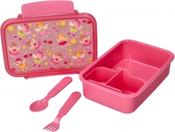 Štýlový a funkčný desiatový box s čarovným motívom víl poteší deti aj rodičov. Ponúka praktické riešenie na prenášanie desiat vďaka integrovanej súprave príborov a jednoduchej údržbe. Pred prvým použitím odporúčame výrobok dôkladne umyť.