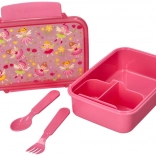 Praktický desiatový box s motívom víl je ideálny do školy, na výlety aj krúžky. Súčasťou je príbor – vidlička a lyžica. Box je vhodný do mrazničky a možno ho ohrievať v mikrovlnnej rúre bez veka (max. 100 °C). Kompaktné rozmery sa ľahko zmestia do školskej tašky.