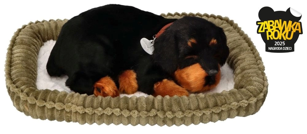 Hľadáte tichého spoločníka do detskej izby alebo darček, ktorý poteší a zároveň upokojí? Dýchajúce šteniatko rottweilera Perfect Petzzz napodobňuje skutočné dýchanie, ticho sa nadvihuje a vyzerá ako naozajstný spiaci psík. Je skvelé na relax pred spaním aj ako dekorácia do izbičky.