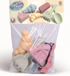 - Obsah sady: hrabličky, lopatka a 4 formičky (nanuk, zmrzlina, tortička, croissant)