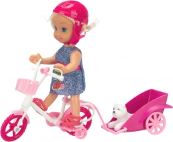 Naša úžasná hračka zahŕňa mini bábiku s výškou 11 cm oblečenú v farebných šatách s mašľou, pripravenú na vzrušujúcu jazdu na bicykli. Psíka môžete vziať v prívese, čo dodáva hre na autentickosti a podporuje kreativitu detí.