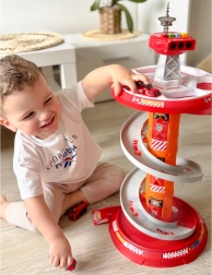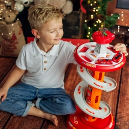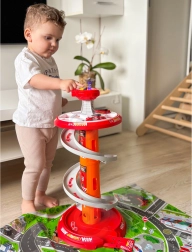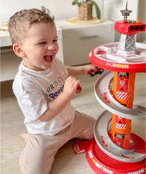 Roztočte zábavu s viacposchodovým hasičským parkoviskom WOOPIE! Stabilná veža so špirálovou rampou umožňuje plynulý a rýchly zjazd autíčok z vrchu až na základňu. Deti si precvičia jemnú motoriku aj predstavivosť, keď vyrazia k zásahu po označenej výjazdovej trase a podľa cestných značiek.