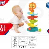 Táto farebná špirálová veža pomáha rozvíjať motorické zručnosti, koordináciu a presnosť vašich detí. Päť úrovní zaručuje dlhodobú zábavu, zatiaľ čo sympatický lev na vrchole môže inšpirovať deti k cieľom a zlepšeniu ich schopností. Loptičky obsahujú drobné elementy vydávajúce zvuky a ponúkajúce dodatočné zmyslové podnety. Hračka je vyrobená z bezpečného a testovaného plastu pre maximálnu bezpečnosť malých hráčov.