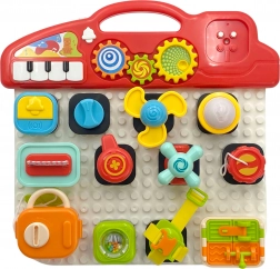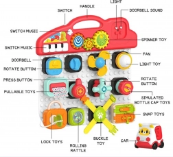 Farebný panel obsahuje rôzne prepínače, gombíky a tlačidlá, ktoré rozvíjajú motorické zručnosti.