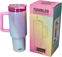 Štýlový a praktický termohrnček s objemom 1200 ml s pohodlným uchom a slamkou v modernom dúhovom prevedení. Skvelý na cesty, do práce aj na tréning – udrží váš nápoj po ruke a vďaka viečku so slamkou minimalizuje rozliatie.