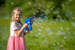Viacnásobné trysky a automatické fúkanie zaistia neprerušený prúd krásnych a dlhotrvajúcich bubliniek pre maximálnu zábavu vonku aj doma.