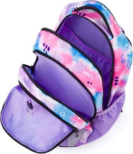 Oxybag Watercolor je praktický batoh určený pre školské a cestovné účely. Trojkomorové usporiadanie poskytuje priestor pre notebook, učebnice a ďalšie potreby: