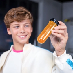 Naplnte tubu vodou, zatvorte a traste, kým nezačne bublat, objavte svoj tajomný úlovok.