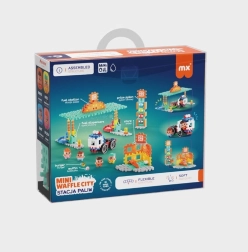 Kocky Mini Waffle sú mäkké, poddajné a ľahko sa spájajú do pevných konštrukcií. Umožňujú stavať ploché 2D aj priestorové 3D modely, čím podporujú kreativitu, predstavivosť a manuálnu zručnosť. Set je navyše kompatibilný s ostatnými produktmi série Mini Waffle City, takže môžete postupne rozširovať celé mesto.