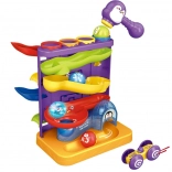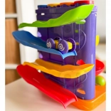 Vďaka tematickým guľôčkam možno hravou formou precvičovať počítanie aj abecedu. Deti si zlepšia koordináciu, silu úchopu a pochopenie príčiny a následku – guľôčka alebo autíčko vyštartuje zhora a zíde až nadol po zvlnených dráhach.